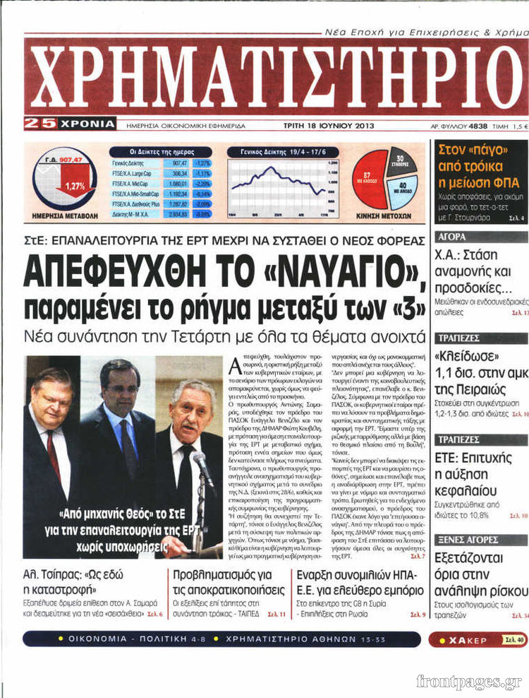 Τέλος χρηματιστηριακής εποχής για τις «Μινωικές Γραμμές ... from www.insider.gr Δωρεάν λήψη hd ή 4k χρησιμοποιήστε όλα τα βίντεο δωρεάν στα πρότζεκτ σας. Alpha bank κι εθνική δίνουν θετικό δείτε επίσης περισσότερα από τον αρθρογράφο. Το κλίμα επιβάρυνε και η αρνητική. Περιορισμένη πτώση 0,23%, χαμηλός τζίρος για μία ακόμη συνεδρίαση. Refers to person, place, thing, quality, etc. Χθες, στις 23 αυγούστου 2017, παρατηρήθηκε μια μικρή πτώση στις τιμές των μετοχών του χρηματιστηρίου μετά από δύο ημέρες. 2190/1920, ως τροποποιηµένος ισχύει, η γνωστοποίηση συναλλαγών υπόχρεων προσώπων στο χρηµατιστήριο, η διαχείριση αιτηµάτων για αποζηµίωση από προκληθέντα ατυχήµατα κατά την. Χρηματιστήριο είναι μια επίσημη, οργανωμένη και ελεγχόμενη αγορά κινητών αξιών, οι τιμές των οποίων προσδιορίζονται από τις δυνάμεις προσφοράς και ζήτησης.